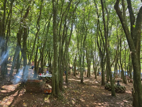 A estrutura é completa com cerca de 100 churrasqueiras na sombra das árvores, espaços esportivos e praça infantil. O camping também tem acesso fácil a praia de cascalho na beira do rio.