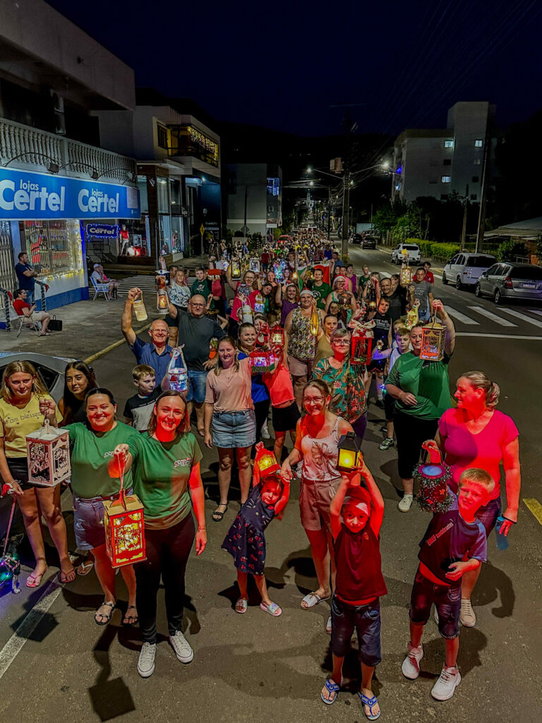 Crianças, jovens, adultos e idosos participaram levando lanternas dos mais diversos formatos, tamanhos e cores, com detalhes que remetiam ao período natalino. A estimativa é de que mais de 200 lanternas integraram a procissão iluminada, que teve início ao som do badalar dos sinos da igreja.