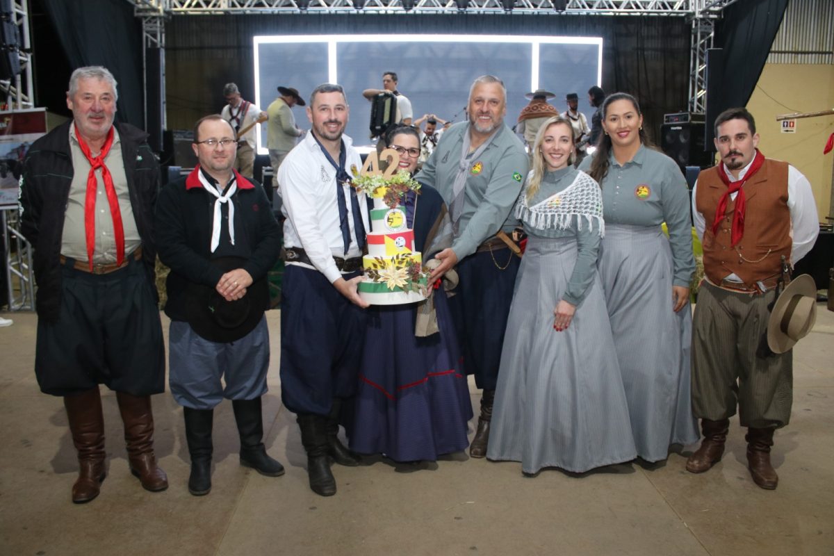 Durante o ato, a patronagem, prendas, peões e integrantes dos departamentos subiram ao tablado para compor o protocolo festivo. Também marcaram presença representantes da 14ª Região Tradicionalista, incluindo a coordenadora Luciana Parisoto.