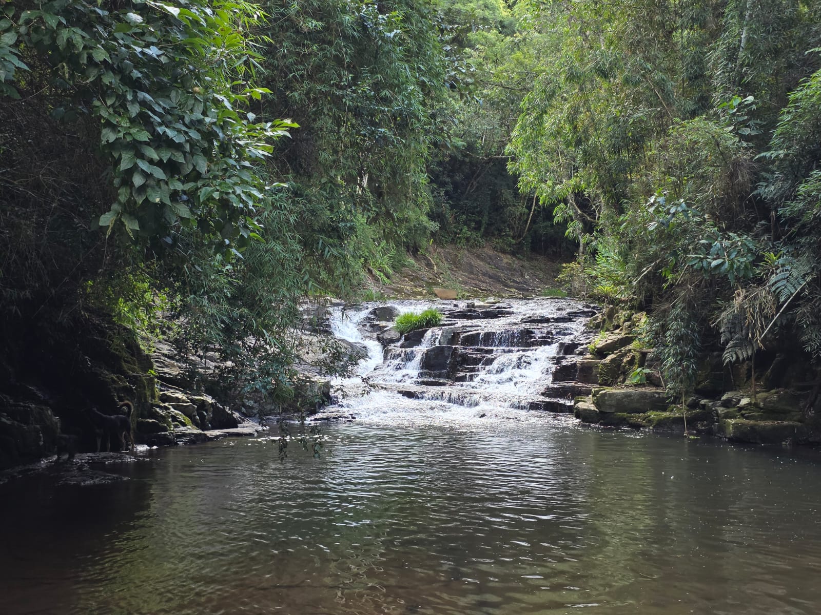 O atrativo principal é a pequena cachoeira com a água caindo nos paredões numa altura de aproximadamente cinco metros. No topo dela, outra grata surpresa: as piscinas naturais formadas pelo riacho no caminho de pedras.