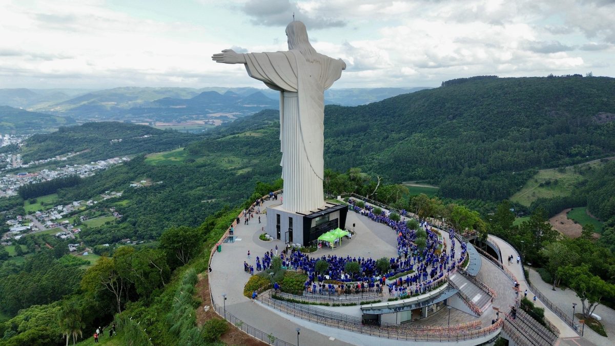 Cerca de 650 pessoas participaram, na tarde de sábado (22), de uma celebração marcada pela fé e pela união comunitária aos pés do Cristo Protetor de Encantado. Integrantes dos Cursilhos de Cristandade de diversas paróquias da Diocese de Santa Cruz do Sul, no Vale do Rio Pardo, reuniram-se ao pedestal da gigantesca estátua de 43,5 m de altura, para a tradicional ultreia, momento de saudação, encorajamento e renovação do compromisso cristão.