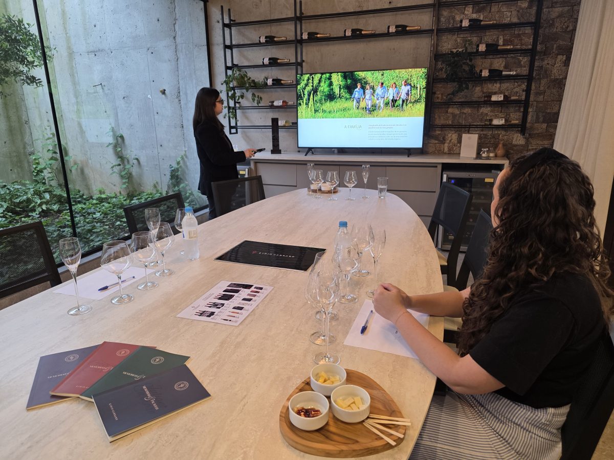 Na semana passada, minha esposa Édina Martins e eu vivenciamos esse momento. Um dos grandes diferenciais é a condução da experiência por uma enóloga – no nosso caso, da Barbara Souza – que explica o processo de produção e características das bebidas, além de dar uma aula sobre etiqueta sobre como abrir as garrafas e saborear os vinhos ou espumantes.