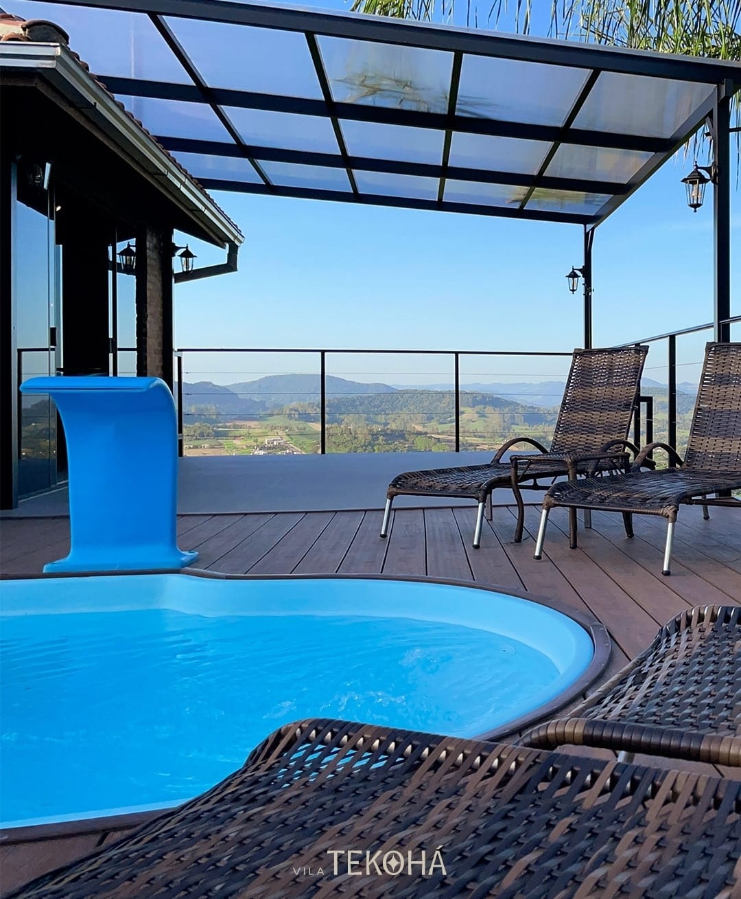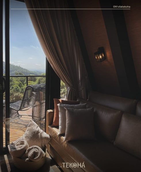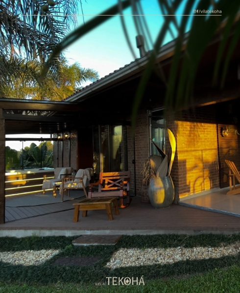 Casa Refúgio Tekohá: perfeita para famílias ou pequenos grupos, acomoda até seis pessoas e conta com piscina, jacuzzi, lareira e amplos espaços de convivência.