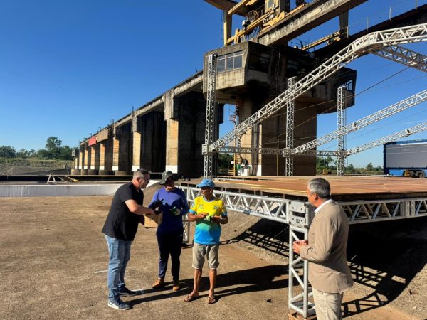 Legenda: Estrutura é montada na Barragem Eclusa. Expectativa é receber mais de 20 mil pessoas