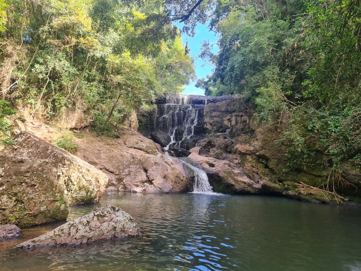 A cascata também está no Recanto da Harmonia com a entrada gratuita e obrigatoriedade de jamais deixar o lixo na natureza.