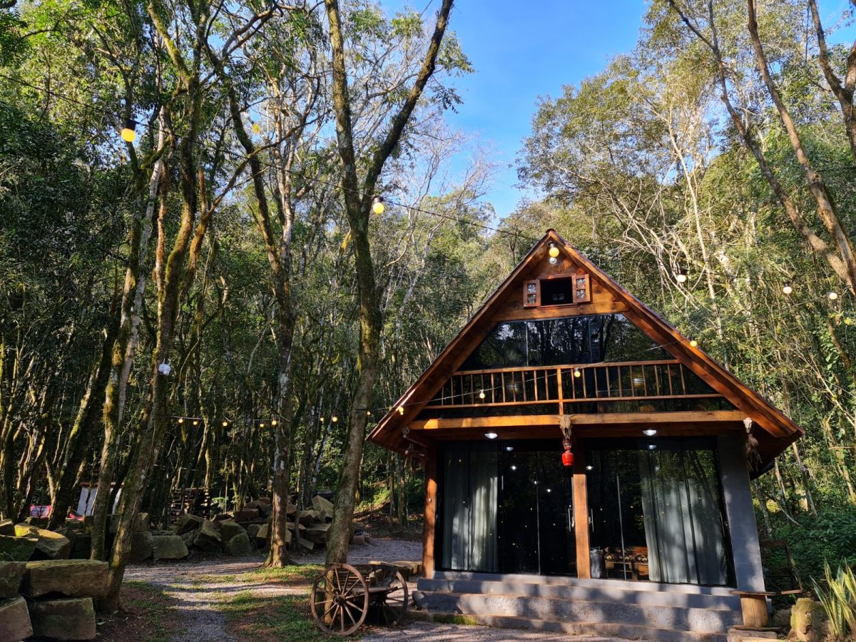Na propriedade também foi instalada uma cabana privativa ideal para casais. A hospedagem tem dois andares com uma sacada de onde é possível admirar toda a beleza da Rasga Diabo.