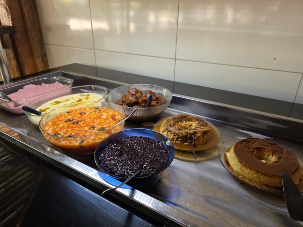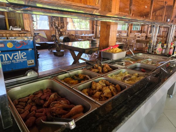Outra opção gastronômica é o restaurante que atende aos sábados e domingos com comida caseira. O bufê conta com uma variedade de saladas, pratos quentes e carne grelhada na hora, além de sobremesa.