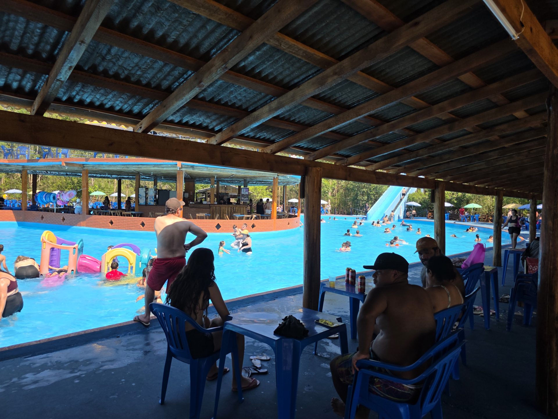 O parque aquático também tem mais de 100 churrasqueiras espalhadas pela natureza. O balneário permite o acesso com bebidas e alimentos nesse espaço, sendo proibido consumir produtos de fora apenas na área da piscina.