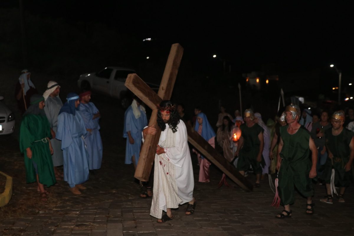 A abertura acontece na Sexta-feira Santa (03/04), a partir das 18h45min, com a encenação da Via Sacra Viva. O espetáculo, que alia fé, arte e tradição, inicia aos pés do morro e segue em forma de peregrinação pelas estações até o topo, onde são apresentadas as cenas finais do Calvário e da Ressurreição de Jesus. O texto e a direção são assinados por Pablo Capalonga, e a apresentação envolve dezenas de voluntários da comunidade.